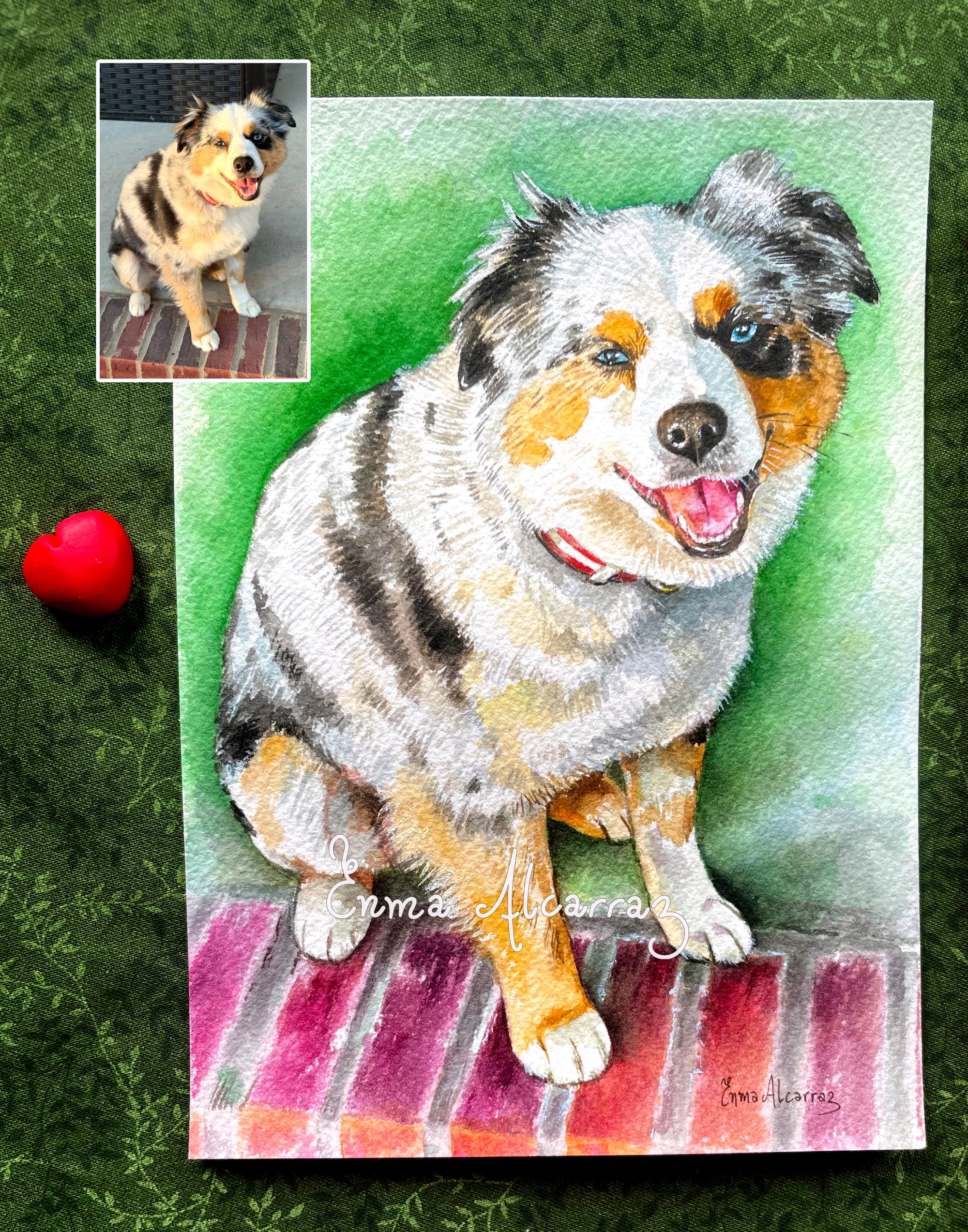Each painting is custom 100% handpainted in watercolor on paper, from a photo.