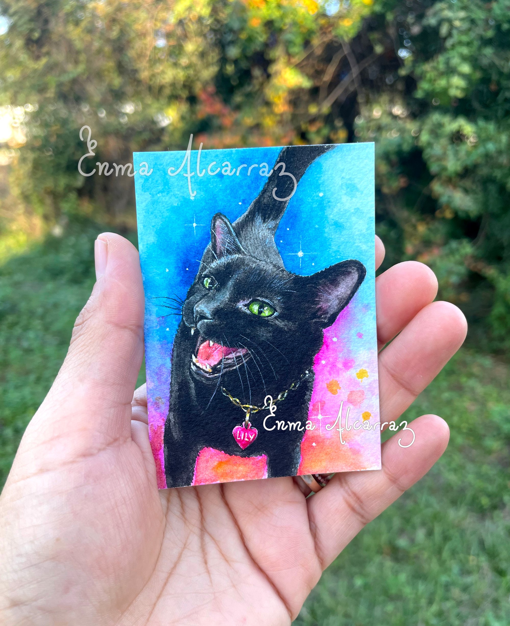 Each painting is custom 100% handpainted in watercolor on 2x3" paper, from a photo.